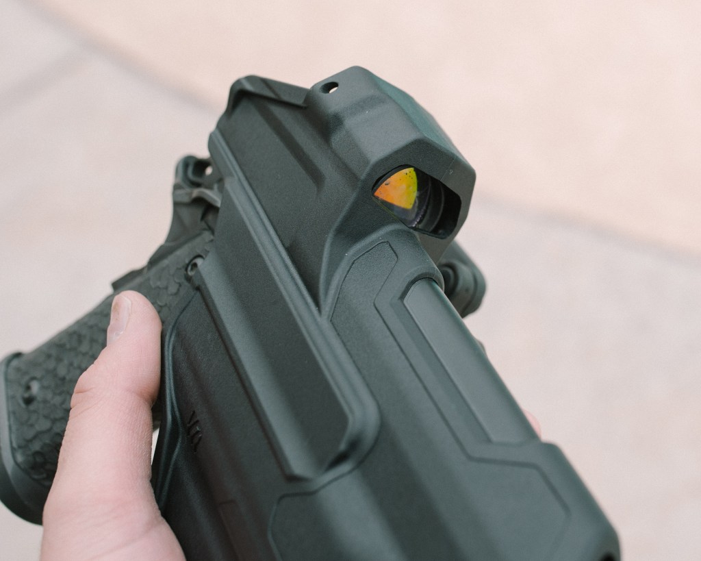 Enter this fucking monster of a holster . Blackhawk L2 T series 2011 Holster . ( HERE ) I have been looking for one of these for a while and havent really seen any info on if it fit a 5″ gun reliably or not. Luckily Roger from QVO had purchased one to run and went with a L3 while I wanted the L2 I was able to buy this one from him.